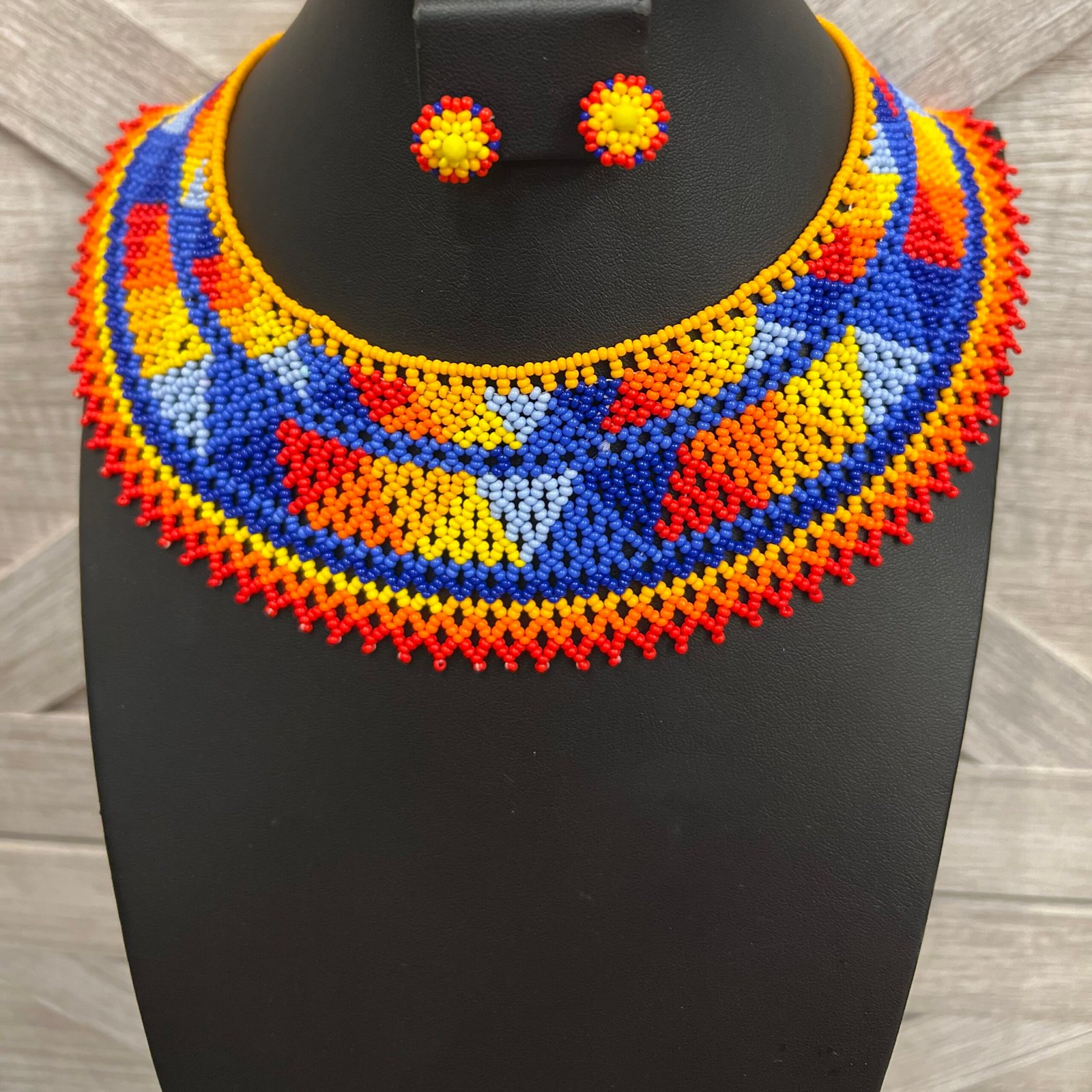 Elegante collar redondo de chaquira. Hecho a mano por nuestros artesanos mexicanos.